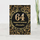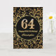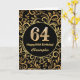 Tarjeta de cumpleaños de patrón floral de oro y negro de cumpleaños número 64. Para una mayor personalización, haga clic en el botón "Personalizar" y utilice nuestra herramienta de diseño para modificar esta plantilla.
