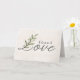 AMAR texto en un elegante tipo de letra con hojas verdes sobre fondo de textura suave neutra para felicitaciones por 65º aniversario