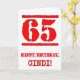 Este divertido diseño de tarjetas de felicitación con temática de cumpleaños presenta un gran número rojo "65" con un estilo inspirado en el sello de goma, junto con el mensaje de bienvenida de cumpleaños "FELIZ CUMPLEAÑOS" y un nombre personalizado en la parte delantera. El interior tiene un mensaje de saludo de cumpleaños modificable, o tal vez podría ser borrado y dejado en blanco si se va a escribir un mensaje a mano. Una divertida tarjeta de felicitación de cumpleaños de personalizable como esta podría ser una manera divertida de enviar saludos de cumpleaños a alguien que está celebrando su sexagésimo quinto cumpleaños. [~Z0000524]