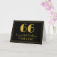 Este estilo vintage y el inspirado diseño de la tarjeta de felicitación de cumpleaños Roaring '20 presenta un gran estilo Art Deco inspirado en el número "66", el mensaje "Feliz cumpleaños número 66", un nombre personalizado, y un patrón de borde compuesto de líneas delgadas en el frente. El fondo del frente es negro de color. El interior tiene un mensaje de bienvenida de cumpleaños personalizado, o tal vez podría ser borrado y dejado en blanco si se va a escribir un mensaje a mano. Una tarjeta de felicitación personalizada de cumpleaños como esta podría ser usada para celebrar el cumpleaños sesenta y seis de alguien. [~Z0000463]
