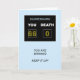 Tarjeta de cumpleaños 66 Una tarjeta de cumpleaños divertida para dar por un cumpleaños. Un marcador muestra la edad como la puntuación ganadora contra la Muerte. Las palabras "¡Estás ganando, mantenlo!" completan la escena.