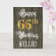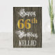 La parte delantera de este elegante y elegante diseño de tarjetas de felicitación de cumpleaños incluye el mensaje "Feliz cumpleaños número 66", junto con un nombre de destinatario personalizado. Parte del mensaje está en un texto con estilo de script ornamentado. El gran número 66th presenta un estilo de imitación/imitación de inspiración dorada. El fondo tiene un patrón imitación/falso inspirado en el grano de madera. El interior tiene un mensaje de bienvenida de cumpleaños de personalizado, o tal vez podría ser borrado y dejado en blanco si un mensaje se va a escribir a mano en su lugar. Una tarjeta de felicitación formal y editable de cumpleaños como esta podría ser usada para celebrar el cumpleaños sesenta y seis de alguien. [~Z0000561]