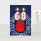 Una copa de vino de cumpleaños con velas. Las velas están compuestas por el número 68, por 68 años. Los fuegos artificiales están explotando en el fondo. Una tarjeta de cumpleaños adecuada para cualquier persona, hombre o mujer.