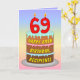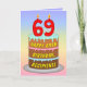 Tarjeta 69º cumpleaños — Torta divertida y velas, con nomb