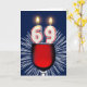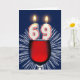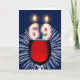 Una copa de vino de cumpleaños con velas. Las velas están compuestas por el número 69, por 69 años. Los fuegos artificiales están explotando en el fondo. Una tarjeta de cumpleaños adecuada para cualquier persona, hombre o mujer.