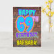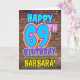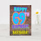 El frente de este divertido diseño de tarjeta de felicitación de cumpleaños presenta el mensaje “FELIZ CUMPLEAÑOS 69”, con una apariencia colorida y vibrante, inspirada en el graffiti y el arte urbano, además de un nombre de destinatario editable. El fondo del frente presenta un patrón inspirado en una pared de ladrillos. El interior tiene un mensaje de felicitación de cumpleaños personalizable, o podría estar en blanco si se desea escribir un mensaje a mano. Una tarjeta de felicitación de cumpleaños divertida y personalizable como esta podría ser una forma divertida de enviar un mensaje de felicitación de cumpleaños a alguien que está celebrando su sexagésimo noveno cumpleaños. [~Z0000531]