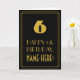 El diseño de esta tarjeta de felicitación inspirada en el estilo de la época de los años 20-1930 y de apariencia vintage/retro tiene un gran estilo Art Deco inspirado en el número "6", el mensaje "FELIZ 6º CUMPLEAÑOS", un nombre editable, y un patrón de frontera consistente en líneas delgadas en el frente. El frente presenta un fondo de color negro. El interior tiene un mensaje personalizado de bienvenida de cumpleaños, o tal vez podría ser borrado y dejado en blanco si se va a escribir un mensaje a mano. Una tarjeta de felicitación de cumpleaños editable como esta podría ser una manera divertida de dar saludos de cumpleaños a alguien que está celebrando su sexto cumpleaños. [~Z0000499]
