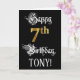 La parte frontal de este diseño de tarjeta de felicitación de cumpleaños elegante y elaborado presenta el mensaje “Happy 7th Birthday”, y un nombre de destinatario editable. Parte del mensaje está en una fuente de estilo formal, el número grande “7th” presenta un patrón de aspecto inspirado en oro falso/imitación, y el fondo es de color negro. El interior tiene un mensaje de felicitación de cumpleaños editable, o quizás podría ser borrado y dejado en blanco si se desea escribir un mensaje a mano en su lugar. Una tarjeta de felicitación de cumpleaños personalizada y ornamentada como esta podría ser una forma respetable de enviar felicitaciones de cumpleaños a alguien que está celebrando su séptimo cumpleaños.