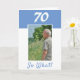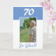 Tarjeta de saludo personalizado de 70 años para un hombre que celebra el 70 cumpleaños. Viene con una cita graciosa y motivacional 70 So What! y es perfecta para una persona con sentido del humor. La carta está en colores azul y blanco. Inserta su foto en la plantilla. También puede cambiar el número del año.