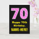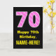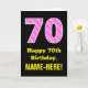 Este alegre y divertido diseño de tarjetas de felicitación con temática de cumpleaños cuenta con un gran número "70" con un patrón a rayas que contiene formas de corazón color rosa oscuro y rosa claro en la parte delantera. En la parte delantera también aparece el mensaje de bienvenida de cumpleaños "Feliz cumpleaños número 70", y un nombre de destinatario de personalizable. El interior presenta un mensaje de bienvenida de cumpleaños modificable, o tal vez podría ser borrado y dejado en blanco si se va a escribir un mensaje a mano. Una tarjeta de personalizado como esta puede ser una manera divertida de enviar deseos de cumpleaños a alguien que está celebrando su septuagésimo cumpleaños. También puede ser una elección divertida para alguien que tiene un cumpleaños que cae sobre el El día de San Valentín (14 de febrero), debido a sus adorables símbolos del corazón y colores. [~Z0000434]