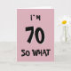 70 Así que qué gracioso Pink Cita la tarjeta de cumpleaños número 70. Cita divertida y inspiradora: tengo 70 años y qué - tipografía negra de moda con fondo rosa. Perfecto para una persona con sentido del humor.
