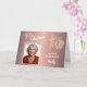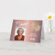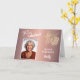 70 y Fabulous Foliage 70th Birthday Photo Card. Texto "70 y fabuloso", "Feliz cumpleaños" en el guión de moda. Añade tu nombre y foto. La tarjeta tiene un precioso follaje en la esquina sobre un fondo metálico rosa dorado.