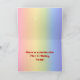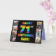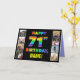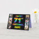 La parte delantera de este alegre y optimista diseño de tarjetas de felicitación de cumpleaños incluye el mensaje "FELIZ CUMPLEAÑOS 71", con un patrón de gradiente inspirado en el espectro multicolor, junto con un nombre de destinatario personalizado. A la izquierda y a la derecha del mensaje con motivos de arco iris en el frente hay algunas fotos que se pueden personalizar, tal vez con fotos del destinatario, la familia y amigos del destinatario, y/o el(los) remitente(s) de la tarjeta. El interior presenta un mensaje de bienvenida de cumpleaños personalizado, o tal vez podría ser borrado y dejado en blanco si se va a escribir un mensaje a mano. Una tarjeta de felicitación de cumpleaños audaz y personalizada como esta podría ser usada para reconocer el cumpleaños setenta y uno de alguien. (Fotografía © Storytree Studios, Stanford, CA.) [~Z0000667]