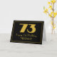 Este estilo vintage y el inspirado diseño de tarjetas de felicitación inspirado en la época de los locos años 2000 presentan un gran estilo Art Déco inspirado en el número "73", el mensaje "Feliz 73 cumpleaños", un nombre editable, y un patrón de borde formado por líneas delgadas en el frente. El fondo del frente es negro de color. El interior tiene un mensaje de saludo de cumpleaños modificable, o tal vez podría ser borrado y dejado en blanco si se va a escribir un mensaje a mano. Una tarjeta de felicitación personalizada de cumpleaños como esta podría ser usada para celebrar el cumpleaños setenta y tres de alguien. [~Z0000498]