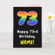 Tarjeta 73° cumpleaños: arcoiris colorido # 73, nombre per
