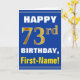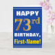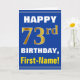 Tarjeta 73.o cumpleaños del oro intrépido, azul, falso con