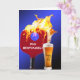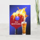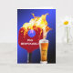 Paddle rojo de bola de pickleball con bola azul en llamas y vaso de cerveza en un brillante fondo azul para 75 años. Se puede cambiar el color de fondo. Se puede cambiar la edad de nacimiento. Todo el texto es editable.