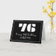 El diseño de esta tarjeta de felicitación inspirada en el estilo de los años 20-30 presenta un gran estilo Art Déco inspirado en el número "76", el mensaje "Feliz cumpleaños 76", un nombre editable, y un patrón de frontera que consiste en líneas delgadas en el frente. El fondo del frente es negro de color. El interior tiene un mensaje de bienvenida de cumpleaños personalizado, o tal vez podría ser borrado y dejado en blanco si se va a escribir un mensaje a mano. Una tarjeta de felicitación personalizada de cumpleaños como esta puede ser una manera divertida de enviar un mensaje de felicitación de cumpleaños a alguien que está celebrando su cumpleaños setenta y seis. [~Z0000486]
