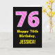 Esta divertida y alegre tarjeta de felicitación temática de cumpleaños presenta un gran número "76" con un patrón rayado que contiene formas de corazón color rosa oscuro y rosa claro en la parte delantera. En la parte delantera también aparece el mensaje de bienvenida de cumpleaños "Feliz cumpleaños número 76", y un nombre de destinatario personalizado. El interior presenta un mensaje de bienvenida de cumpleaños de personalizable, o tal vez podría ser borrado y dejado en blanco si se va a escribir un mensaje a mano. Una tarjeta de personalizado como esta puede ser una manera divertida de enviar deseos de cumpleaños a alguien que está celebrando su cumpleaños setenta y seis. También puede ser una elección divertida para alguien que tiene un cumpleaños que cae sobre el El día de San Valentín (14 de febrero), debido a sus adorables símbolos del corazón y colores. [~Z0000434]