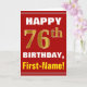 Las características del este de felicitación diseño cumpleaños-temáticas simples de la tarjeta un deseo caliente del cumpleaños tienen gusto del "76.o CUMPLEAÑOS FELIZ, Primero-Nombre!" en el frente, en texto intrépido en un rojo coloreó el fondo. El número del cumpleaños tiene un falso/una imitación oro-como aspecto del colorante. El nombre en el frente puede ser modificado para requisitos particulares. Las características interiores un mensaje del cumpleaños que puede ser personalizado. Una tarjeta de felicitación como esto podría ser una manera de la diversión de entregar deseos del cumpleaños alguien que está celebrando su sexto cumpleaños setenta. [~Z0000276]