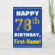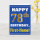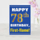 Tarjeta 78.o cumpleaños del oro intrépido, azul, falso con