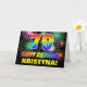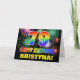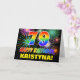 La parte delantera de este alegre, colorido y divertido diseño de tarjetas de felicitación con temática de cumpleaños incluye un gran número "79" y el mensaje "FELIZ CUMPLEAÑOS", ambos coloreados con un patrón inspirado en el gradiente del espectro del arcoiris, junto con un nombre de destinatario personalizado amarillo en negrita. El frente también presenta un patrón de fondo multicolor inspirado en fuegos artificiales de celebración reventando. El interior presenta un mensaje de bienvenida de cumpleaños editable, o tal vez podría ser borrado y dejado en blanco si se va a escribir un mensaje a mano. Una colorida tarjeta de cumpleaños de personalizable como esta podría ser una manera divertida de enviar un mensaje celebrando el cumpleaños setenta y nueve de alguien. [~Z0000471]