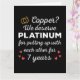 Diseño divertido, perfecto para todo aquel que haya estado casado por 7 años y para una ceremonia de renovación de la promesa boda. ¡Es un gran conjunto para las parejas! 'Cobre? Merecemos Platinum por aguantarse la cita de 7 años para una pareja que se casó hace 7 años o una pareja que renueva los votos bodas en su aniversario de cobre. ¿Eres un marido o una mujer romántica? ¡Acentúa tu estilo con este arte! Gran regalo para tu amigo que se casó hace 7 años, esposo o esposa de 7 años, o papá y mamá celebrando su sétimo aniversario de boda.