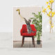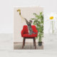Gato de tabby gris jugando con globo de Relieve metalizado dorado y cintas en una silla roja por sétimo cumpleaños. El texto interior es editable.