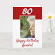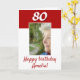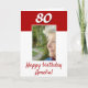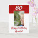 80.ª Tarjeta de cumpleaños feliz con foto roja. La tarjeta está pintada en tonos rojos y blancos. Personalice con su foto y texto en la parte delantera y su mensaje dentro de la tarjeta o borre. También puede cambiar la edad.