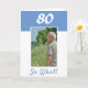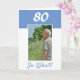 Tarjeta de saludo de personalizado de 80 años para un hombre que celebra el 80 cumpleaños. Viene con una cita graciosa y motivacional 80 So What! y es perfecta para una persona con sentido del humor. La carta está en colores azul y blanco. Inserta su foto en la plantilla. También puede cambiar el número del año.