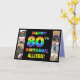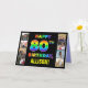 La parte delantera de este llamativo y alegre diseño de tarjetas de felicitación con temática de cumpleaños muestra el mensaje "FELIZ 80º CUMPLEAÑOS", con un vibrante patrón de gradiente inspirado en el espectro del arcoiris, junto con un nombre de destinatario personalizado. Las fotos a la izquierda y a la derecha del mensaje con motivos de arco iris en la parte delantera de la tarjeta se pueden personalizar, tal vez con fotos del destinatario, la familia y amigos del destinatario, y/o el(los) remitente(s) de la tarjeta. El interior tiene un mensaje de bienvenida de cumpleaños de personalizado, o tal vez podría ser borrado y dejado en blanco si un mensaje se va a escribir a mano en su lugar. Una tarjeta de felicitación audaz y personalizada de cumpleaños como esta podría ser una manera divertida de enviar un mensaje de felicitación de cumpleaños a alguien que está celebrando su ochenta cumpleaños. (Fotografía © Storytree Studios, Stanford, CA.) [~Z0000667]