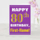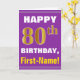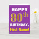 Las características del este de felicitación diseño cumpleaños-temáticas simples de la tarjeta un deseo caliente del cumpleaños tienen gusto del "80.o CUMPLEAÑOS FELIZ, Primero-Nombre!" en el frente, en texto intrépido en una púrpura coloreó el fondo. El número del cumpleaños tiene un falso/una imitación oro-como aspecto del colorante. El nombre en el frente puede ser modificado para requisitos particulares. Las características interiores un mensaje del cumpleaños que puede ser personalizado. Una tarjeta de felicitación como esto podría ser una manera de la diversión de entregar deseos del cumpleaños alguien que está celebrando su cumpleaños octogésimo. [~Z0000277]