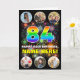 La parte delantera de este alegre y optimista diseño de tarjetas de felicitación de cumpleaños presenta un gran número "84" con un patrón de gradiente inspirado en el espectro de arcoiris multicolor, junto con el mensaje "FELIZ 84º CUMPLEAÑOS", y un nombre personalizado, en un patrón inspirado en fuegos artificiales de múltiples colores. En la parte superior y inferior del frente hay imágenes que se pueden personalizar, tal vez con fotos de la familia y amigos del destinatario. El interior tiene un mensaje de saludo de cumpleaños modificable, o tal vez podría ser borrado y dejado en blanco si se va a escribir un mensaje a mano. Una tarjeta de felicitación divertida y personalizada de cumpleaños como esta podría ser enviada para celebrar el cumpleaños ochenta y cuatro de alguien. (Fotografía © Storytree Studios, Stanford, CA.) [~Z0000660]