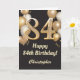 Tarjeta 84.º cumpleaños Confetti de globos negros y de oro