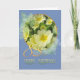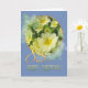 Una carta elegante con Primorroses sobre un fondo azul.