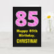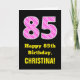 Este alegre y divertido diseño de tarjetas de felicitación con temática de cumpleaños presenta un gran número "85" con un patrón de rayas rosa oscuro y rosa claro que contiene formas de corazón en la parte delantera. En la parte delantera también aparece el mensaje de bienvenida de cumpleaños "Feliz cumpleaños número 85", y un nombre de destinatario personalizado. El interior presenta un mensaje de bienvenida de cumpleaños de personalizable, o tal vez podría ser borrado y dejado en blanco si se va a escribir un mensaje a mano. Una tarjeta de personalizado como esta puede ser una manera divertida de mandar deseos de cumpleaños a alguien que está celebrando su ochenta y cinco cumpleaños. También puede ser una elección divertida para alguien cuyo cumpleaños cae en el El día de San Valentín (14 de febrero), debido a sus adorables símbolos del corazón y colores. [~Z0000434]