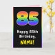 Tarjeta 85 cumpleaños: Arcoíris Colorido # 85, Nombre Pers