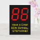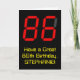 El frente de este diseño de tarjeta de felicitación de cumpleaños con temática geek y nerd presenta un gran número "86" con una apariencia de estilo de pantalla digital de siete segmentos rojos, junto con el mensaje "Feliz 86 cumpleaños", y un nombre personalizado, sobre un fondo de color negro. El interior presenta un mensaje de felicitación de cumpleaños personalizable, o quizás podría estar en blanco si se desea escribir un mensaje a mano en su lugar. Una tarjeta de cumpleaños como esta podría ser una forma divertida de enviar deseos de cumpleaños a alguien que está celebrando su cumpleaños número ochenta y seis.
