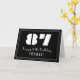 Este diseño inspirado de tarjetas de felicitación con temática de cumpleaños retro de 1920-1930 presenta un gran estilo Art Déco inspirado en el número "87", el mensaje "Feliz cumpleaños número 87", un nombre personalizado, y un patrón de frontera consistente en líneas delgadas en el frente. El fondo del frente es negro de color. El interior tiene un mensaje personalizado de bienvenida de cumpleaños, o tal vez podría ser borrado y dejado en blanco si se va a escribir un mensaje a mano. Una tarjeta de felicitación de cumpleaños de personalizable como esta podría ser una manera divertida de enviar un mensaje de felicitación de cumpleaños a alguien que está celebrando su cumpleaños número ochenta y siete. [~Z0000486]