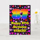 La parte delantera de este alegre y alegre diseño de tarjetas de felicitación temática de cumpleaños presenta un gran número "87" con un patrón inspirado en el gradiente del espectro arcoiris. También incluye el mensaje "Feliz cumpleaños número 87", y un nombre de personalizable. El fondo de la parte delantera presenta un patrón de formas cardíacas púrpura, roja y rosa. El interior tiene un mensaje de bienvenida de cumpleaños de personalizable, o tal vez podría ser borrado y dejado en blanco si un mensaje se va a escribir a mano en su lugar. Una tarjeta de felicitación alegre y personalizada de cumpleaños como esta podría ser usada para celebrar el cumpleaños ochenta y siete de alguien. [~Z0000551]