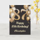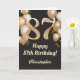 Tarjeta 87.º cumpleaños Confetti de globos negros y de oro