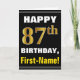 Tarjeta 87.o cumpleaños del oro intrépido, negro, falso