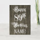 La parte delantera de este diseño formal y elegante de tarjetas de felicitación con temática de cumpleaños muestra el mensaje "Feliz cumpleaños 89", en un texto de estilo de escritura de lujo. En la parte delantera también hay un nombre editable para el receptor y un patrón de fondo inspirado en la madera falsa. El interior tiene un mensaje de bienvenida de cumpleaños personalizado, o tal vez podría ser borrado y dejado en blanco si se va a escribir un mensaje a mano. Una elaborada y editable tarjeta de felicitación de cumpleaños como esta podría ser enviada para celebrar el cumpleaños ochenta y nueve de alguien. [~Z0000556]