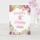 8.ª acuarela Flores Florales Pink Card con nombre y edad personalizados. Para una mayor personalización, haga clic en el botón "Personalizar" y utilice nuestra herramienta de diseño para modificar esta plantilla.