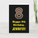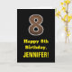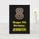 Este rústico y divertido diseño de tarjetas de felicitación con temática de cumpleaños cuenta con un gran número "8" con un estilo inspirado en el grano de imitación en la parte delantera. En la parte delantera también aparece el mensaje de bienvenida de cumpleaños "Feliz octavo cumpleaños", y un nombre de destinatario editable. El interior presenta un mensaje de bienvenida de cumpleaños de personalizado, o tal vez podría ser borrado y dejado en blanco si se va a escribir un mensaje a mano. Una tarjeta de cumpleaños personalizada como esta podría ser una manera divertida de reconocer el octavo cumpleaños de alguien. [~Z0000433]