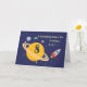 ¡El 8 de noviembre está fuera de este mundo! Un barco con cohetes, planetas y estrellas llenan la parte delantera de la tarjeta con el mensaje mientras se cuenta para decir ¡Feliz Cumpleaños!