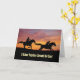 A charming wedding anniversary card showcasing a cowboy and cowgirl riding horses against a vibrant southwestern sunset. Playful, sassy, and full of fun.