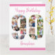 Crea tu propia tarjeta de cumpleaños número 90 con un collage de fotos único. Esta gran tarjeta de cumpleaños tiene un gran número 90 recortado lleno con tus fotos familiares favoritas y puede ser personalizada para la abuela, nana o con un nombre. La plantilla está configurada para que edite los mensajes dentro de la tarjeta y agregue las imágenes trabajando en el wisealrededor de cada número. "Cumpleaños feliz [nombre]" está escrito en tipografía de escritura rosa. Este collage de fotos personalizados contiene una mezcla de retratos, formas cuadradas y paisajísticas para que puedas encajar mejor en tus fotos favoritas.