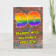 Este divertido y vibrante arte urbano callejero y diseño de tarjetas de felicitación inspirado en el graffiti de cumpleaños presenta un gran número "90" con un colorido patrón inspirado en el gradiente del espectro arcoiris. También incluye el mensaje "Feliz cumpleaños número 90", y un nombre personalizado. El fondo de la parte delantera tiene un patrón de pared de ladrillo. El interior presenta un mensaje de bienvenida de cumpleaños editable, o tal vez podría ser borrado y dejado en blanco si se va a escribir un mensaje a mano. Una colorida tarjeta de felicitación de cumpleaños de personalizable como esta podría enviarse para celebrar el cumpleaños 90 de alguien. [~Z0000586]