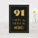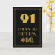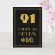 Este diseño de tarjetas de felicitación inspirado en la época de los años 2010, de apariencia vintage/retro, presenta un gran diseño de estilo Art Déco inspirado en el número "91", el mensaje "HAPPY 91st BIRTHDAY", un nombre editable, y un patrón de borde formado por líneas delgadas en el frente. El fondo del frente es negro de color. El interior tiene un mensaje de saludo de cumpleaños modificable, o tal vez podría ser borrado y dejado en blanco si se va a escribir un mensaje a mano. Una tarjeta de felicitación personalizada de cumpleaños como esta podría ser una manera divertida de dar saludos de cumpleaños a alguien que está celebrando su cumpleaños noventa y uno. [~Z0000499]